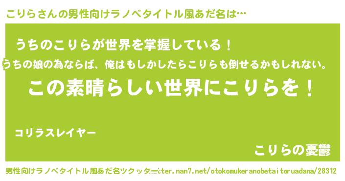 | 胡散臭い通販商品みたいなあだ名 | 『あなたにだけ特別に提供する限定10本のレアな日本酒…その名も「こりら」』 |