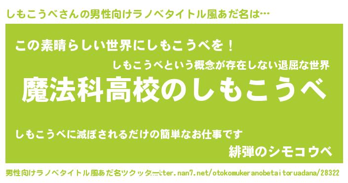 | 女子向けラノベタイトル風あだ名 | 『しもこうべなんてお断りですっ。』 |