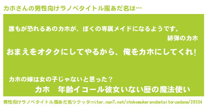 | 女子向けラノベタイトル風あだ名 | 『カホ夫妻のなれそめ』 |