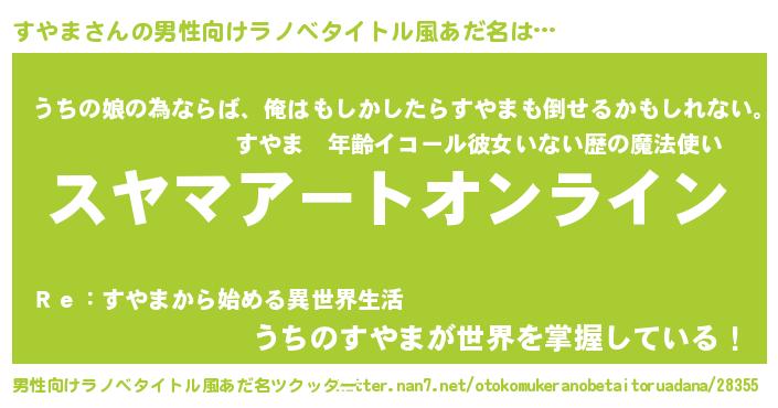 | ファンタジー風あだ名 | 『スヤフェル』『エターナルスヤマー』 |