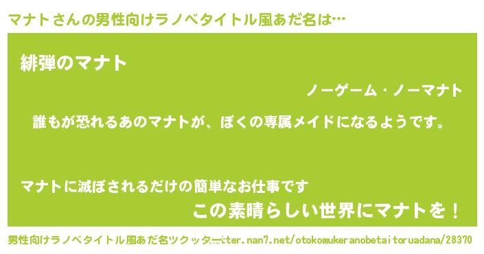 | 女子向けラノベタイトル風あだ名 | 『異世界でカフェマナトを開店しました。』 |