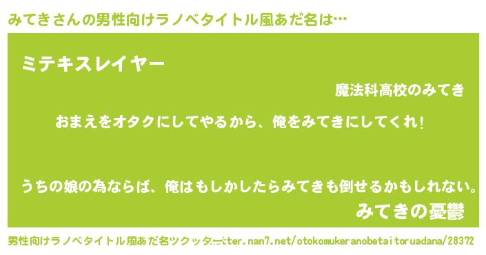 | 女子向けラノベタイトル風あだ名 | 『みてき恋絵巻』『みてきアンティーク』 |
