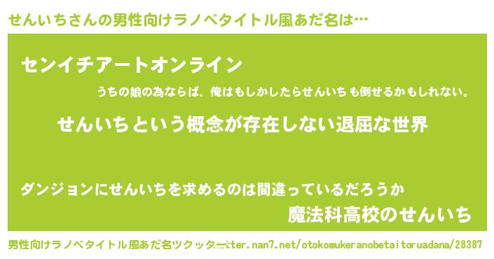 | 胡散臭い通販商品みたいなあだ名 | 『絶対に幸福をもたらす健康食品…その名も「せんいち」』 |