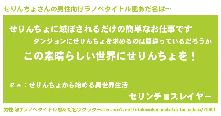 | 意味不明あだ名 | 『住所不定無職せりんちょ(79歳)』 |