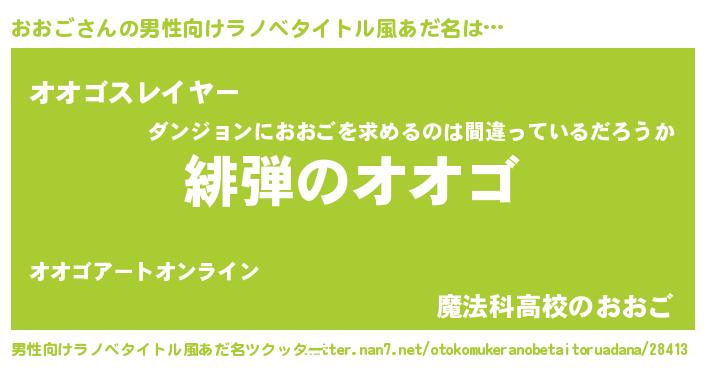 | ヒーロー風カッコイイあだ名 | 『超時空戦士オオゴ』『暗黒騎士オオ』 |