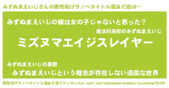 | 肩書あだ名 | 『みずぬまえいじ少佐』 |