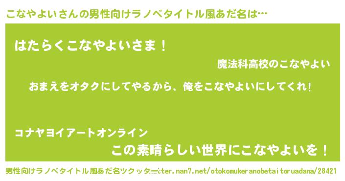 | 女子向けラノベタイトル風あだ名 | 『こなやよい恋絵巻』 |