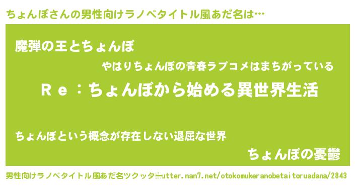 | 女子向けラノベタイトル風あだ名 | 『ちょんぼストレイドッグス』 |