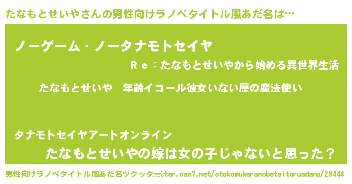 | 女子向けラノベタイトル風あだ名 | 『たなもとせいやの玉の輿計画!』 |