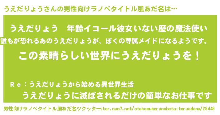 | 意味不明あだ名 | 『住所不定無職うえだりょう(59歳)』 |