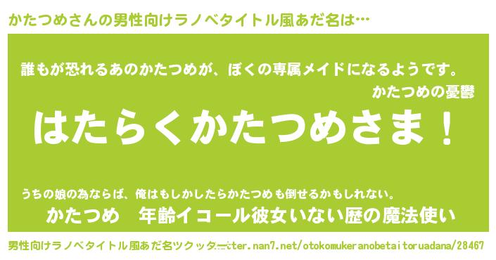 | 胡散臭い通販商品みたいなあだ名 | 『来世でも幸せになれる健康食品…その名も「かたつめ」』 |