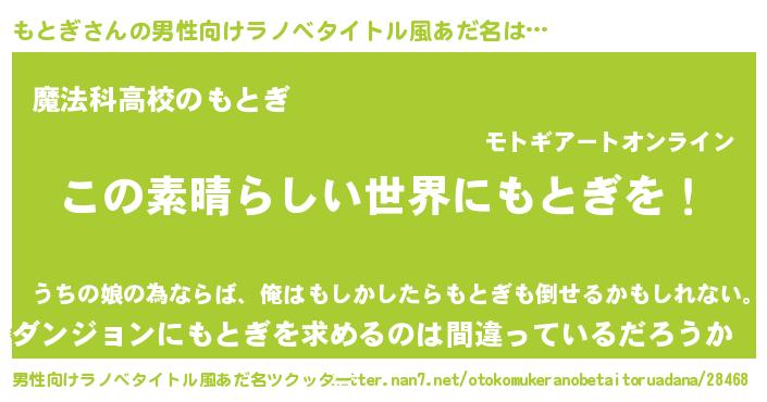 | 胡散臭い通販商品みたいなあだ名 | 『あなたにだけ特別に提供する世界で10本だけ現存している希少なブランデー…その名も「もとぎ」』 |
