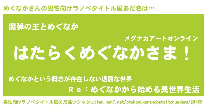めぐなかさんの男性向けラノベタイトル風あだ名をツクッター!