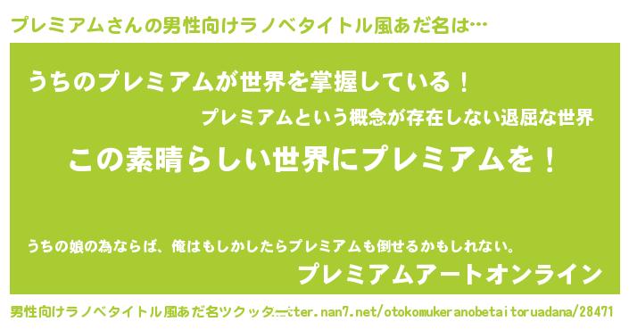 | ヒーロー風カッコイイあだ名 | 『仮面プレダー』『スーパープレミアム』 |