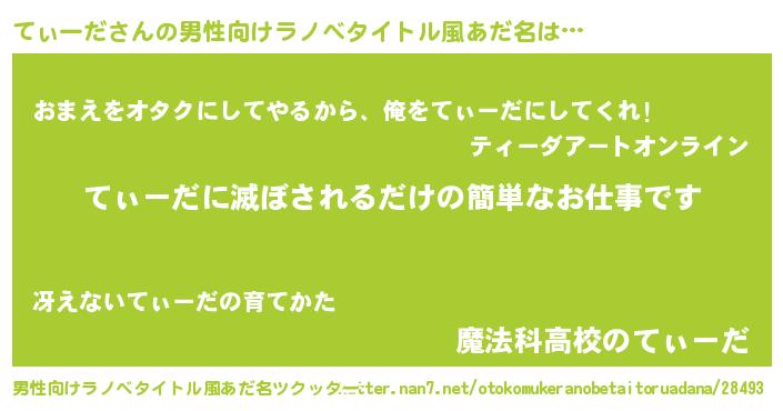 てぃーださんの男性向けラノベタイトル風あだ名をツクッター!