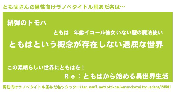 | 女子向けラノベタイトル風あだ名 | 『異世界で失敗しない100のともは』 |