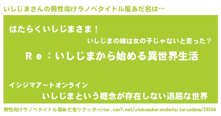 | ヘコむあだ名 | 『いしじま(笑)』『いしお』 |