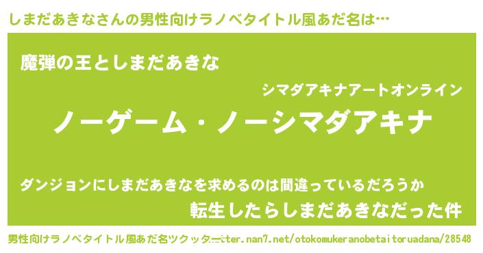 | 女子向けラノベタイトル風あだ名 | 『しまだあきな恋絵巻』 |