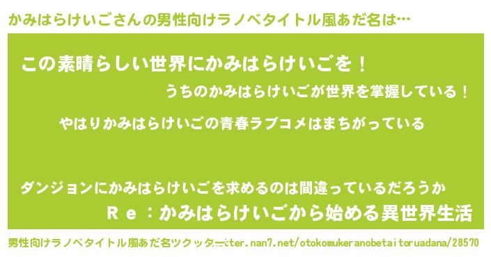 | 意味不明あだ名 | 『かみはらけいごフォーエバー』 |