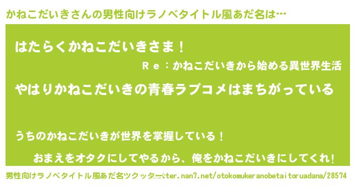 | 女子向けラノベタイトル風あだ名 | 『かねこだいきの雑貨屋さん』 |