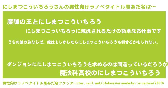 | 意味不明あだ名 | 『にしまつこういちろうフォーエバー』 |