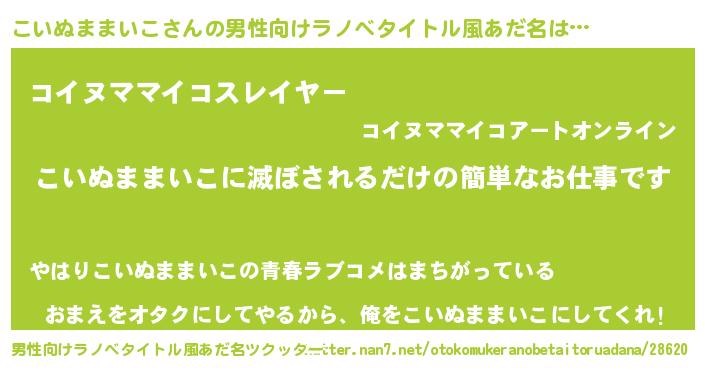 | 胡散臭い通販商品みたいなあだ名 | 『モンドセレクションを受賞したマグネット磁石…その名も「こいぬままいこ」』 |