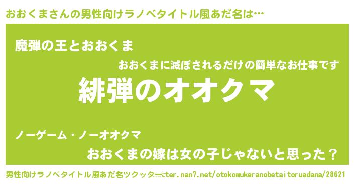 | 女子向けラノベタイトル風あだ名 | 『シンデレラおおくま家の靴箱館』 |
