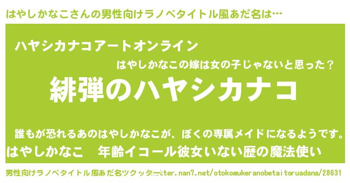 | 胡散臭い通販商品みたいなあだ名 | 『必ず成功する霊験あらたかなお札…その名も「はやしかなこ」』 |