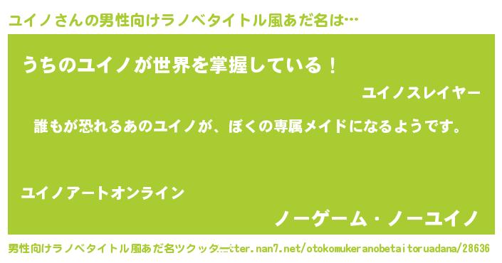 | ヒーロー風カッコイイあだ名 | 『ネオユイノ』『天空の使者ユイノ』 |