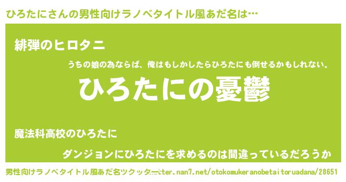 | 女子向けラノベタイトル風あだ名 | 『ひろたに姫と円卓の騎士』 |