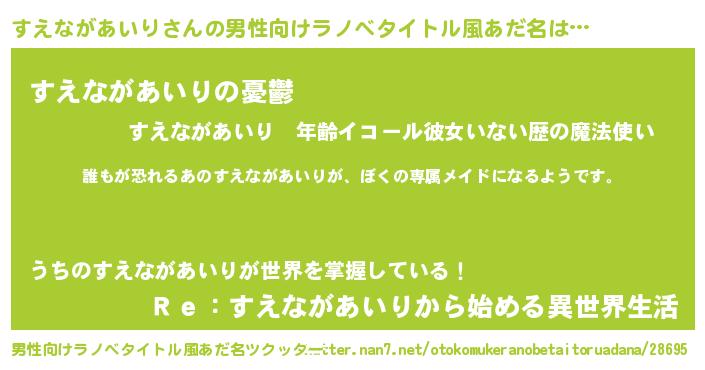 | ヘコむあだ名 | 『すえながあいり(苦笑)』『すえもー』 |