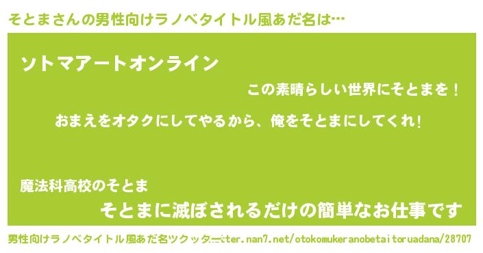 | 女子向けラノベタイトル風あだ名 | 『そとま恋絵巻』『横柄そとまと宰相陛下』 |