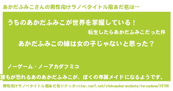 | 女子向けラノベタイトル風あだ名 | 『あかだふみこ様がみてる』 |