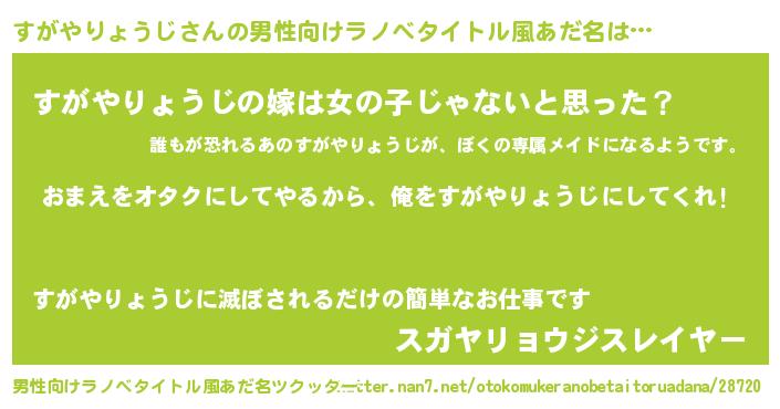 | 女子向けラノベタイトル風あだ名 | 『すがやりょうじ夫妻のなれそめ』 |