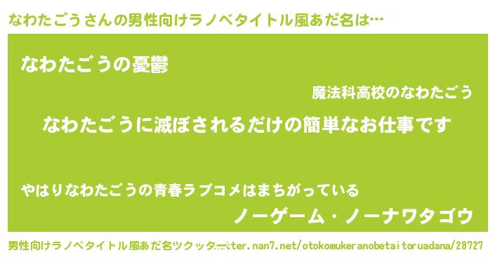 | ヒーロー風カッコイイあだ名 | 『スーパーナワタゴウ』『仮面ナワダー』 |