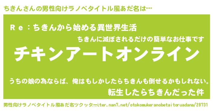 | 意味不明あだ名 | 『ペロリンちきん』『自称ちきん』 |