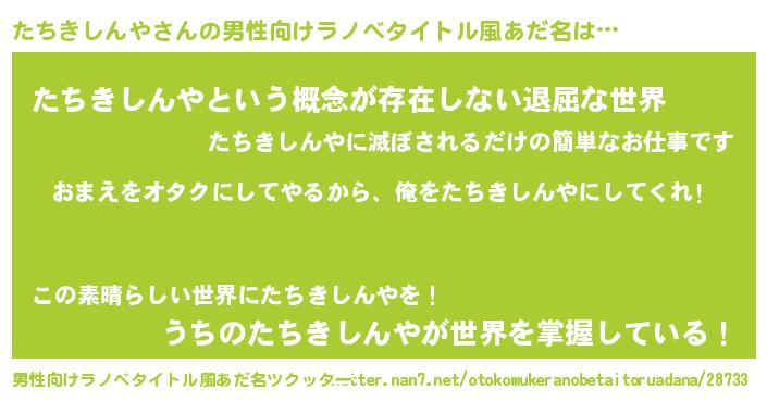 | 肩書あだ名 | 『たちきしんや助手』『たちきしんや艦長』 |