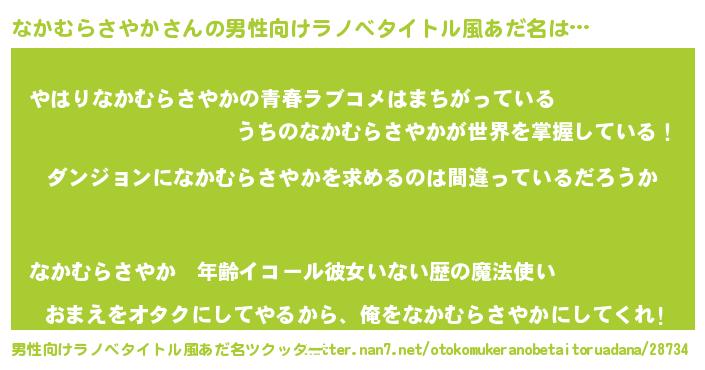 | 女子向けラノベタイトル風あだ名 | 『なかむらさやかは平凡を望む』 |
