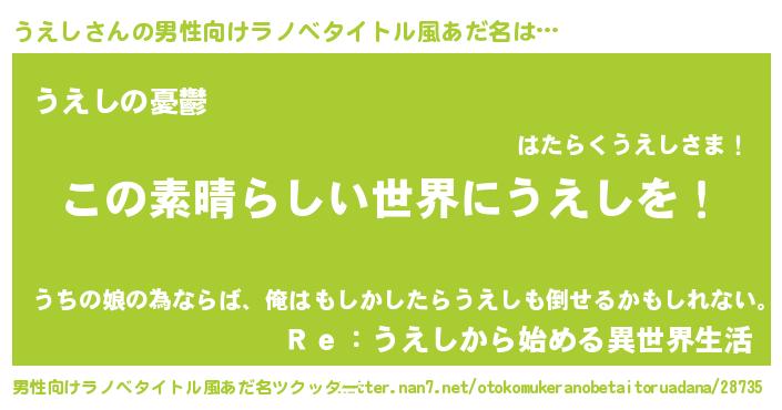 | 意味不明あだ名 | 『住所不定無職うえし(9歳)』『自称うえし』 |
