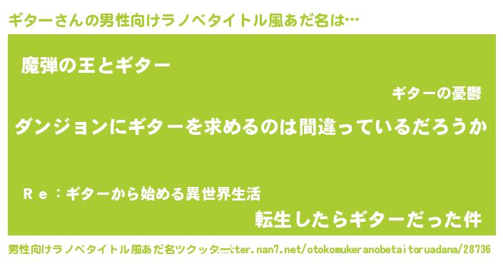 | 女子向けラノベタイトル風あだ名 | 『ギターの卵を拾いまして』『闇のギター』 |