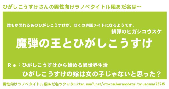 | 意味不明あだ名 | 『住所不定無職ひがしこうすけ(85歳)』 |