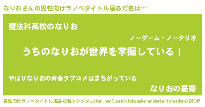 | 女子向けラノベタイトル風あだ名 | 『男装なりおの憂鬱な任務』 |