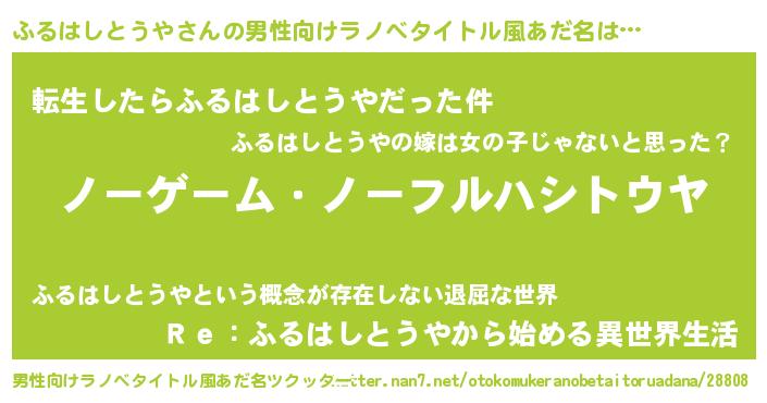 | ヘコむあだ名 | 『ふるぷりん』『ふるはしとうや(笑)』 |
