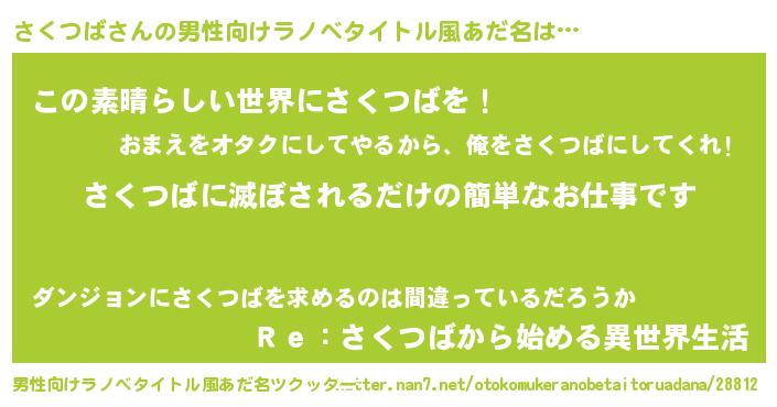 | 意味不明あだ名 | 『住所不定無職さくつば(1歳)』 |