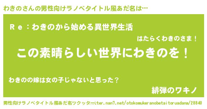 | ヒーロー風カッコイイあだ名 | 『仮面ワキダー』『究極戦士ワキノ』 |