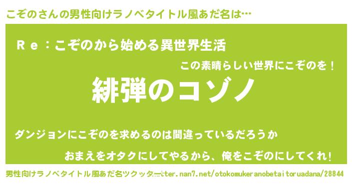 | ヒーロー風カッコイイあだ名 | 『超時空戦士コゾノ』『慈愛の使者こぞの』 |