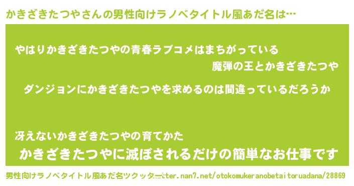 | 女子向けラノベタイトル風あだ名 | 『かきざきたつやは平凡を望む』 |