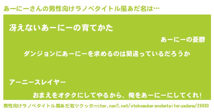 | 女子向けラノベタイトル風あだ名 | 『あーにーは平凡を望む』 |