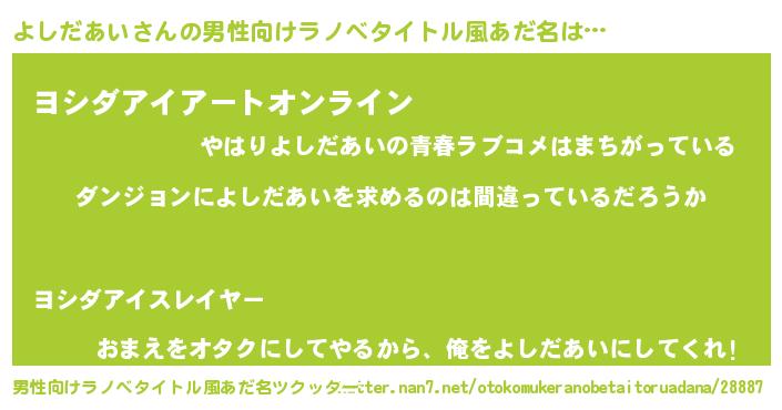 | 胡散臭い通販商品みたいなあだ名 | 『伝統あるペンダント…その名も「よしだあい」』 |