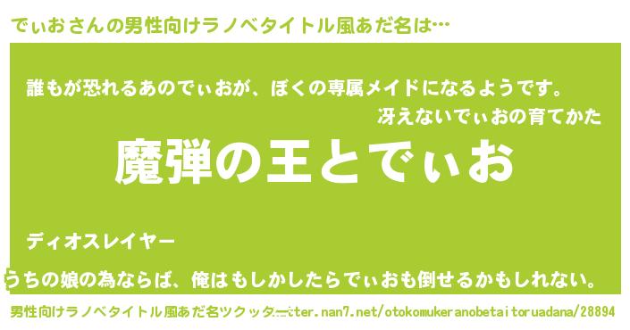 | 女子向けラノベタイトル風あだ名 | 『でぃおが死なない童話 林檎のでぃおの診療簿』 |